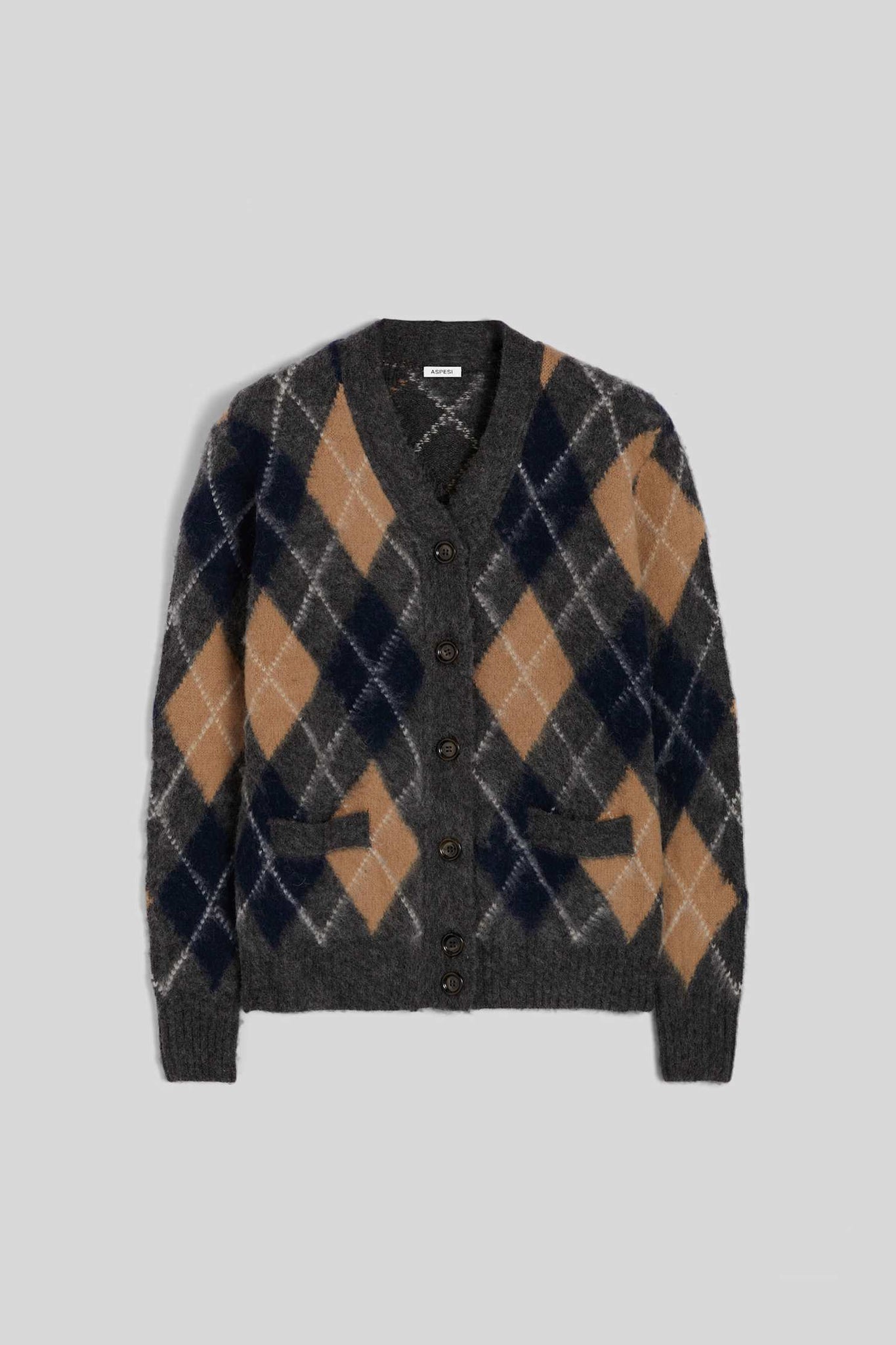 Rutig ullkofta i retro herrstil, V-ringad rak modell med fickor